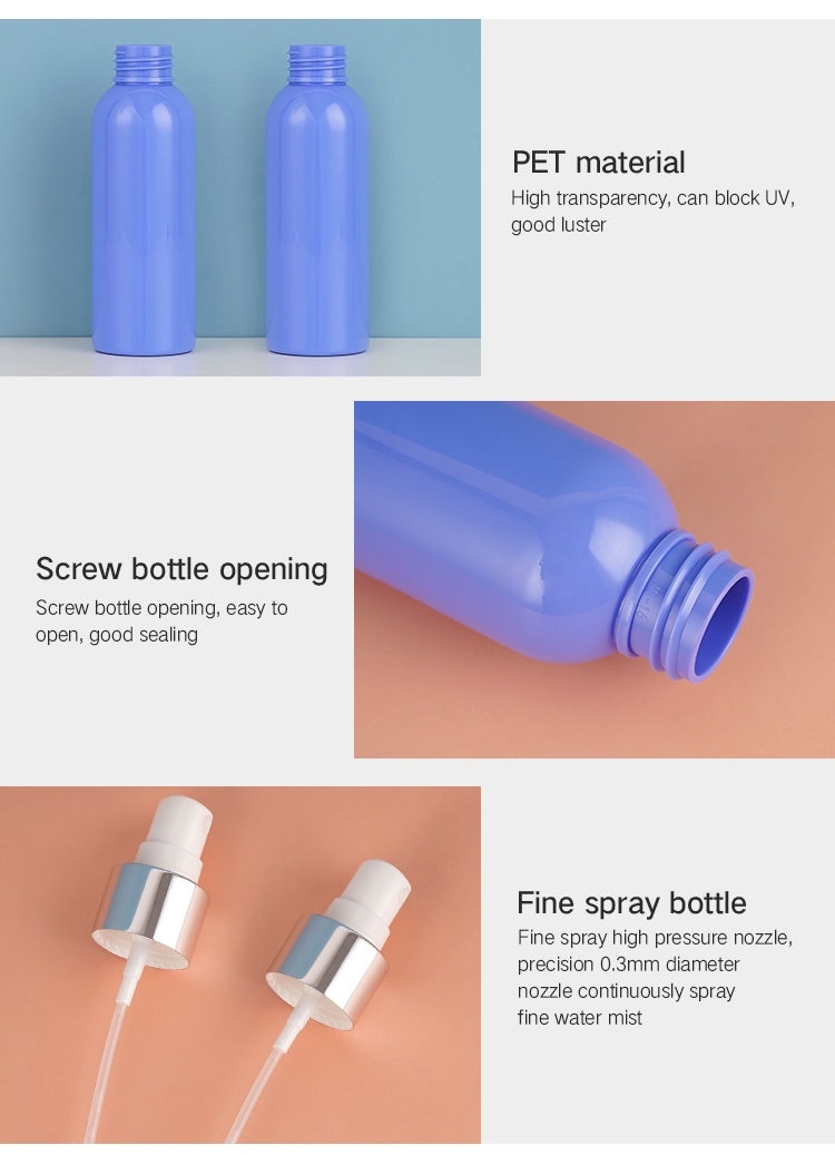 100ml Round Plastic Spray Bottle – PET Blue Bottle with Sprayer