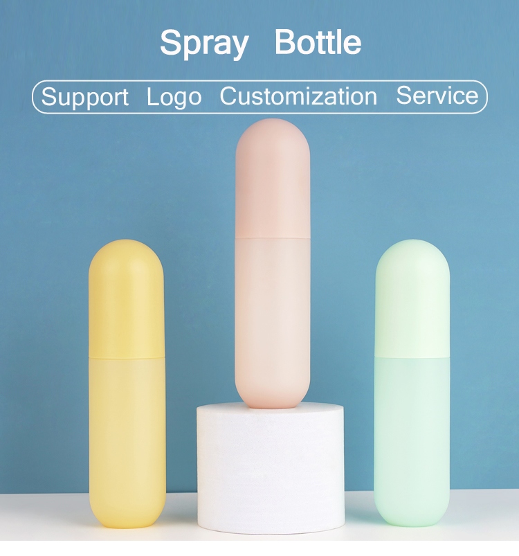 Our 90ml PET macaron color pill capsule-shaped bottles are the ideal solution for packaging a variety of skincare and cosmetic products, including toners, face mists, cleansing waters, makeup removers, and setting sprays. Made from durable PET plastic, these bottles come with a PP spray pump and are eco-friendly, recyclable, and suitable for sustainable packaging needs.